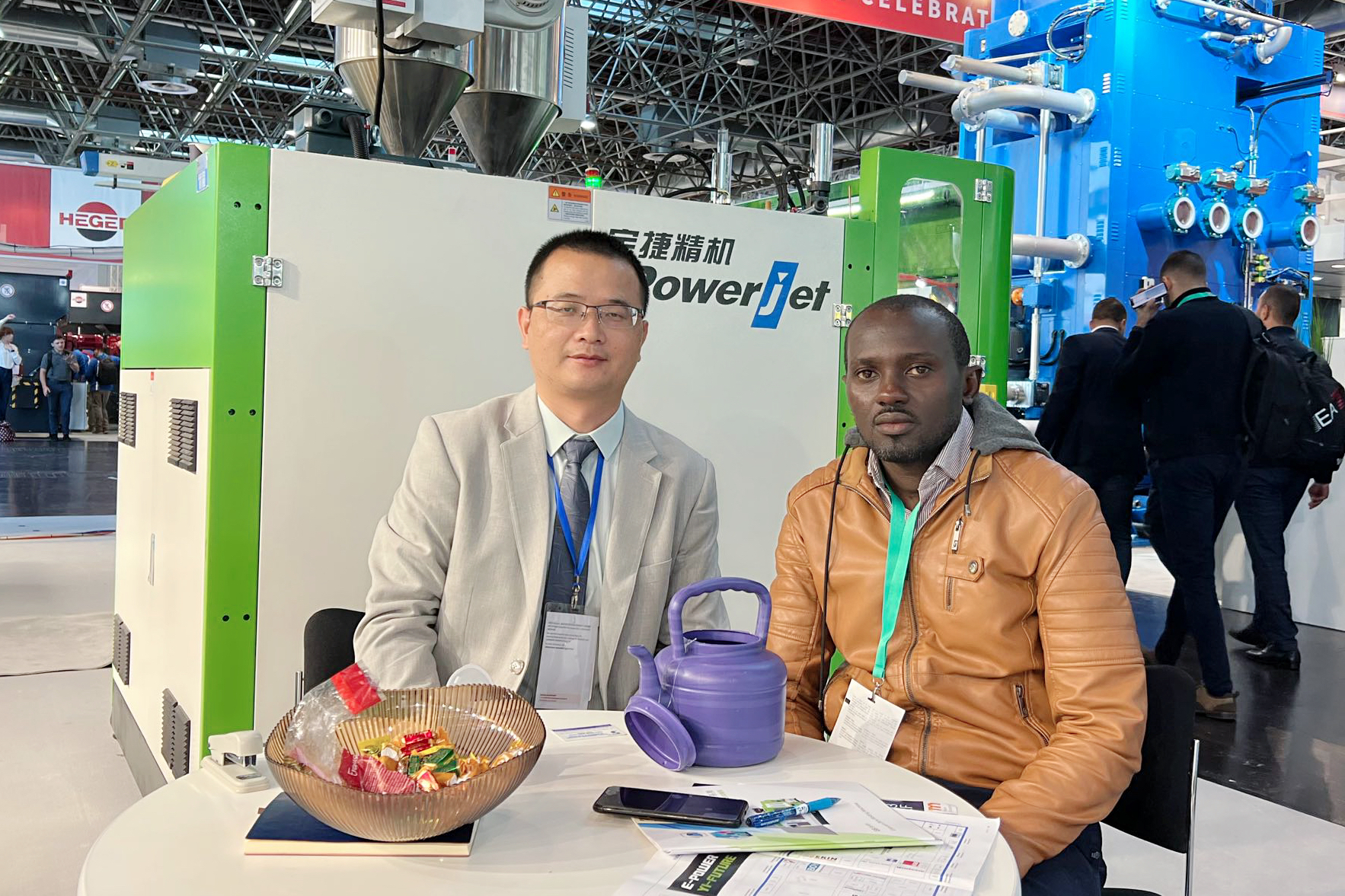 展会的第二天,宝捷展区人气爆棚,对于本次参展宝捷将精湛的技术浓缩为一套PET系列注塑成型解决方案和一套EB系列吹塑成型解决方案展示。吸引了来自世界各地的观展客人驻足观摩,洽谈合作,助力客户提升核心竞争力。